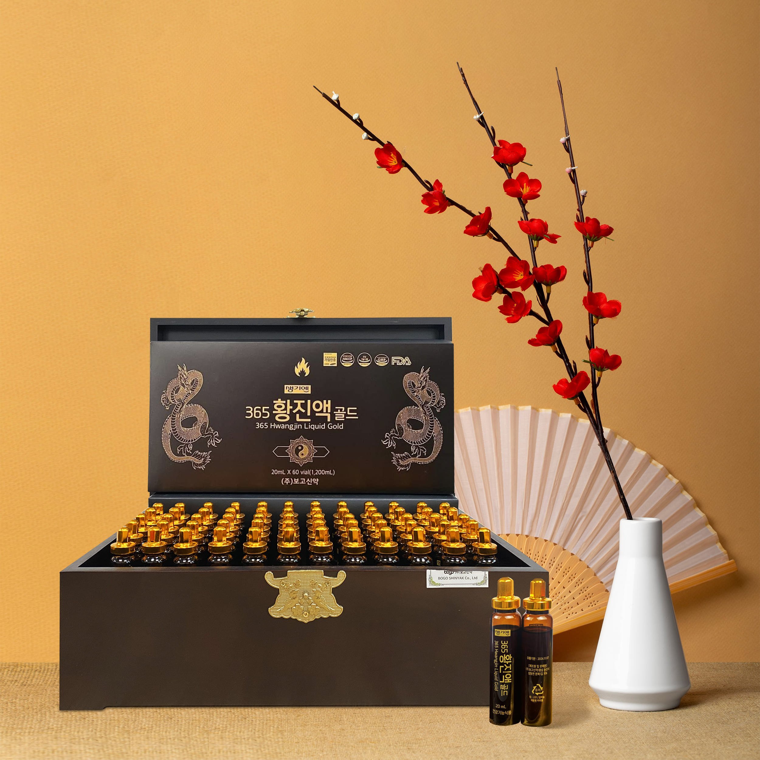 Tinh chất Đông Trùng Con Rồng 365 Hwangjin Liquid Gold là sản phẩm cao cấp được chiết xuất từ đông trùng hạ thảo, nhân sâm Hàn Quốc 6 năm tuổi và các dược liệu quý hiếm. Sản phẩm mang đến nguồn năng lượng dồi dào, giúp tăng cường sức khỏe, cải thiện sinh lực và hỗ trợ phục hồi cơ thể.
